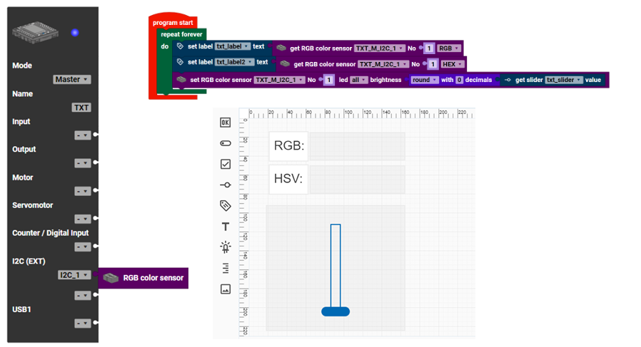 Result: The HSV and RGB values will be displayed on the TXT 4.0 Display.