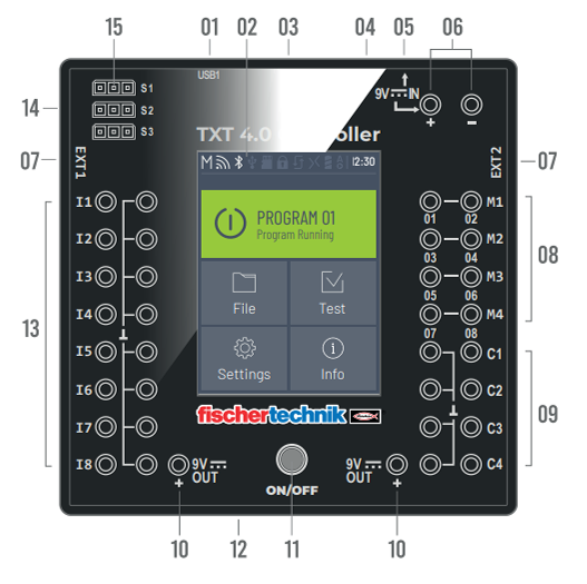 Single: In this mode, using the CAN interface to connect additional TXT 4.0 Controllers as expansions is not supported, in order to reduce power consumption.