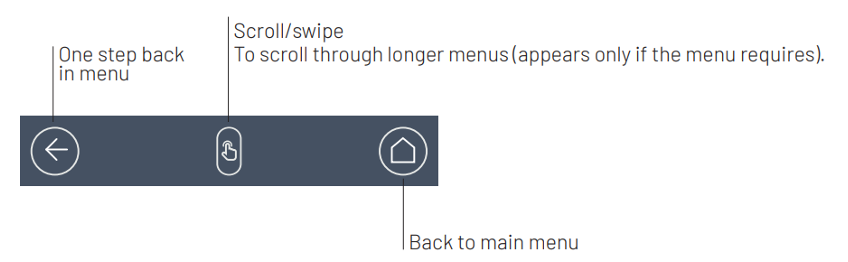 To activate the Controller, press the ON/OFF button (11) and hold it down for approx. 4 seconds until the display lights up – see number 11 in the section “Overview of connections.” Once the boot process is completed (indicated by a loading bar shown on the display), the main menu will appear.