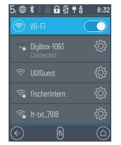 • To complete an update, the TXT 4.0 Controller must be connected to the internet via Wi-Fi. To do so, select the appropriate SSID / Wi-Fi network in Settings / Network / Wi-Fi.