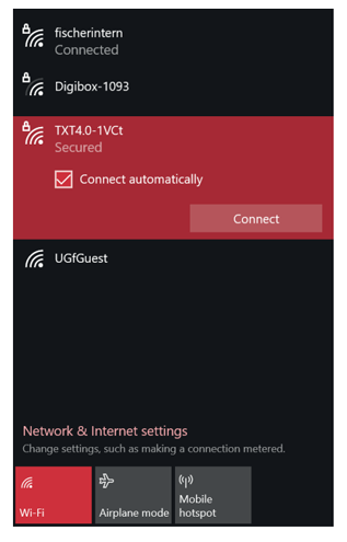 Connecting the TXT 4.0 Controller with a PC Via Wi-Fi (as an Access Point)
