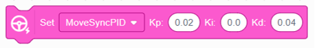 This block defines the PID control values (Kp, Ki, Kd) used to keep both motors synced. These values help the robot correct any differences between the motors, resulting in smoother and more straight movement. |