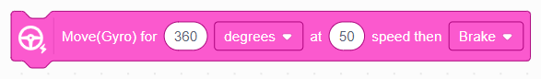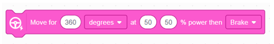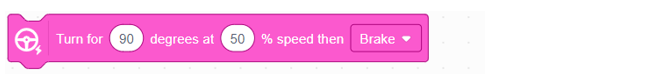 This block rotates the robot by a set number of degrees at a chosen speed. After completing the turn, the robot can brake to stop. |