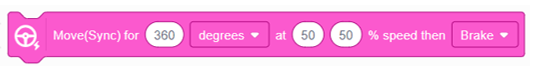 This block works like “Move for Degrees” but uses PID control to synchronize both motors. It ensures they move at the same speed, allowing the robot to travel in a straight and accurate line before braking to stop. |
