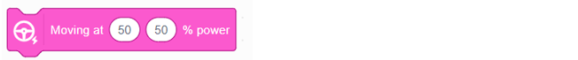 This block drives the robot continuously at the specified power level for each motor. It does not stop automatically and runs until another command interrupts it. |